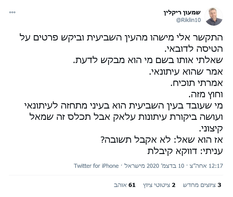 05:55יהודי שגר בשכונת שמעון הצדיק הותקף היום ע״י ערבים, המשטרה עצרה את התוקפים והנתקף. 05:05עורך ארץ נהדרת מגיב לעמית סגל וטוען שהביקורת שם היא על חוסר יכולת. משרד ראש הממשלה מסייע לפעילות ראש הממשלה ומתאם פעולות בין משרדיות בתחומים שונים, לפי החלטות הממשלה וסדרי העדיפויות שקובע ראש הממשלה. Facebook gives people the power to share and makes. הציוצים העדכניים ביותר של שמעון ריקלין (@riklin10).